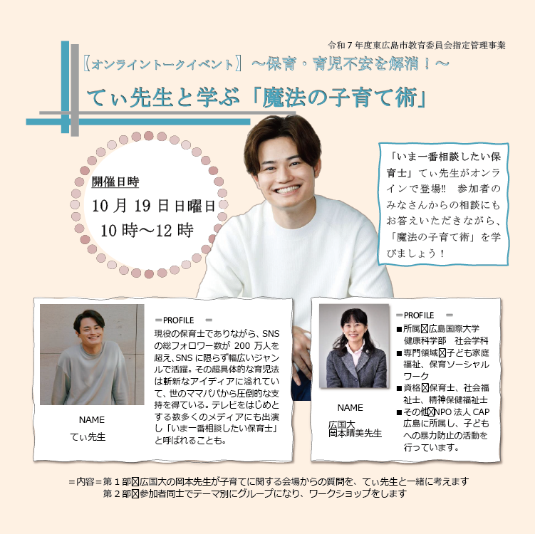 【オンライントークイベント】てぃ先生と学ぶ「魔法の子育て術」タイトル